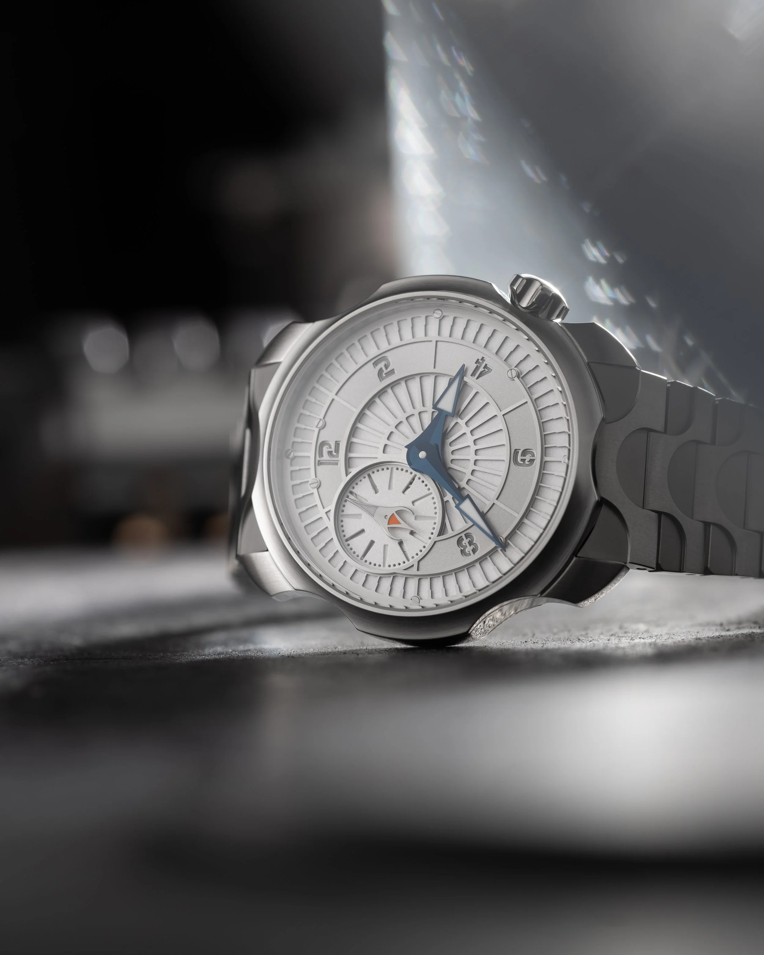 The design language is unmistakably Sarpaneva: layered construction, expressive steel work, touches of lume, and the signature moonface on the caseback, now paired with the updated Chronode movement. The option of what is arguably the coolest steel bracelet in the business completes the package.